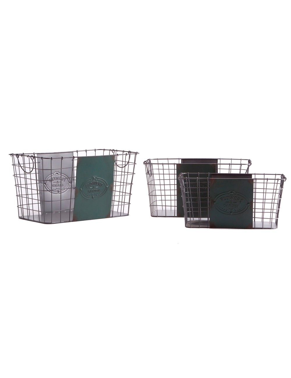 Cesto j/3 de estilo vintage, fabricado en hierro en color gris.