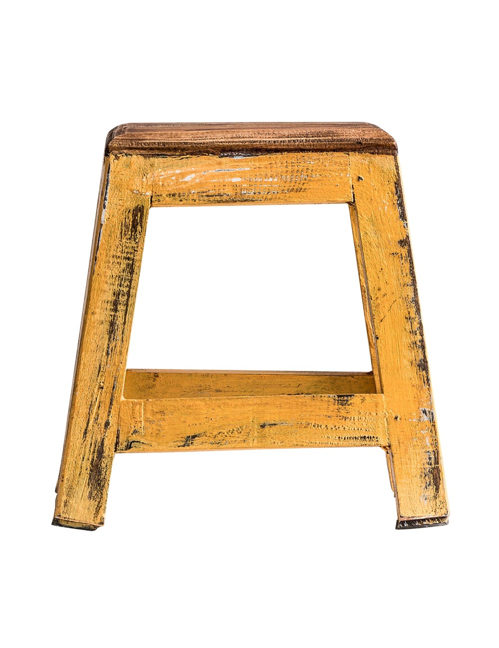Reposapiés cuadrado buzet de estilo kitsh, fabricado en madera de mahogany en color mostaza con acabado decapado.