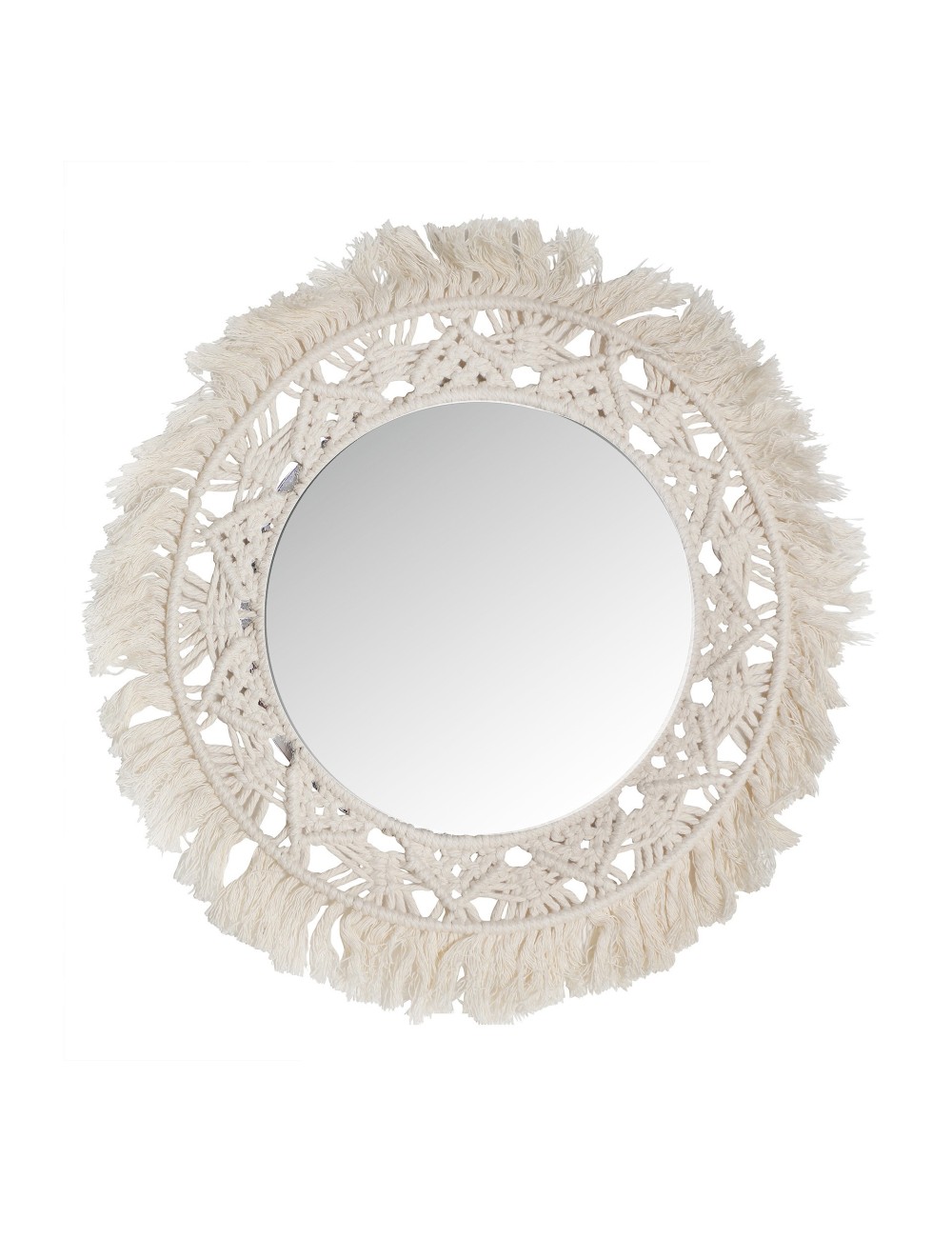 Espejo redonda alayor de estilo shabby chic, fabricado en cuerda en color blanco, combinado con plástico. Espejo plastico.