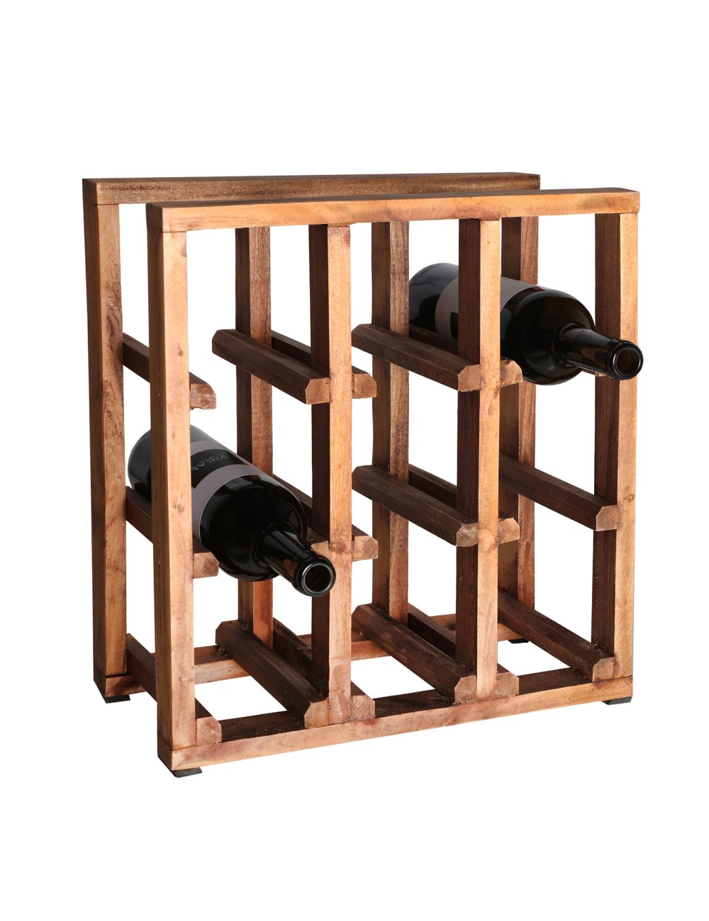 Botellero cuadrado akviran de estilo étnico, fabricado en madera de mahogany en color marrón con acabado envejecido.