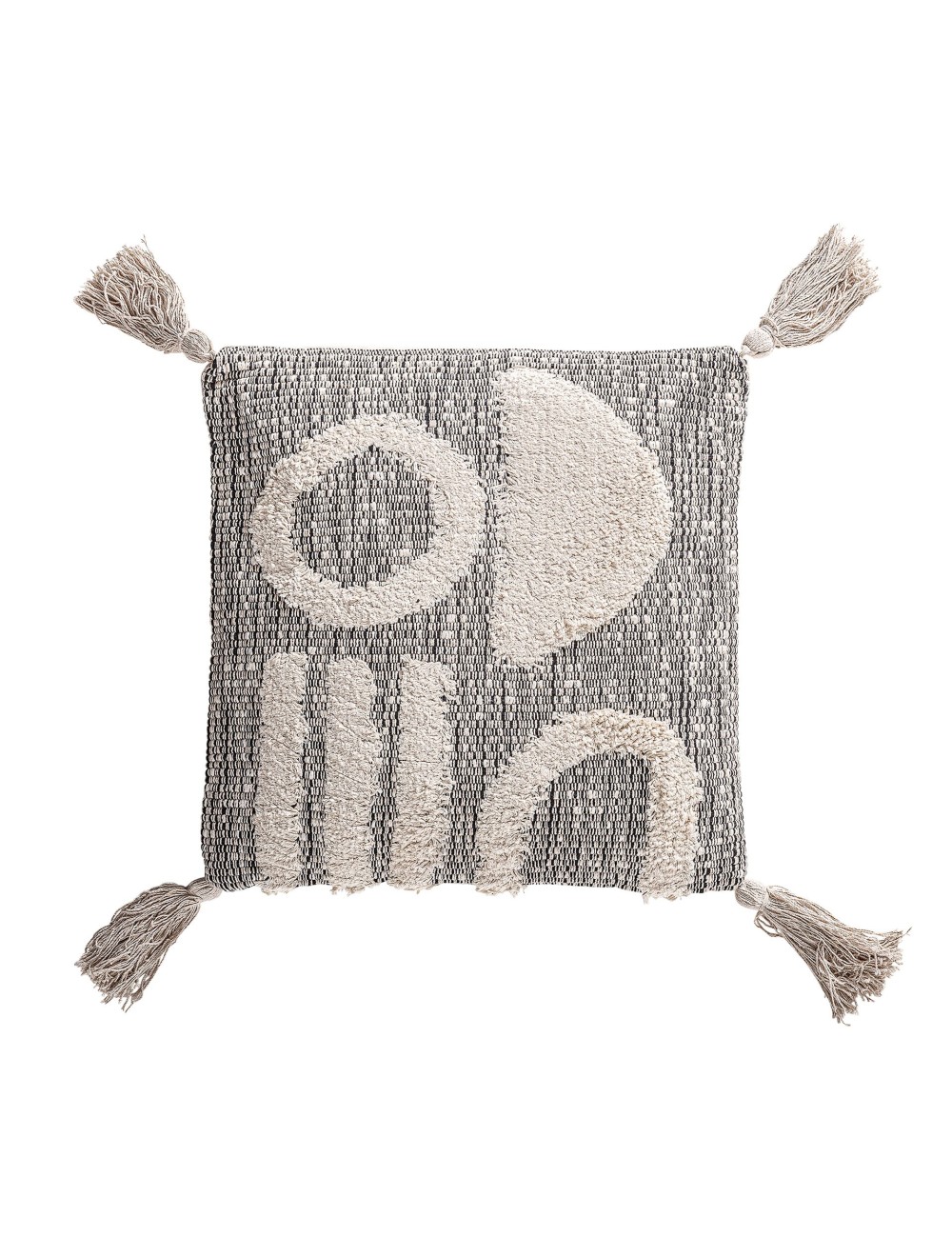 Cojín cuadrado anya de estilo shabby chic, fabricado en algodón en color blanco, combinado con poliéster en color negro. Producto desenfundable.
