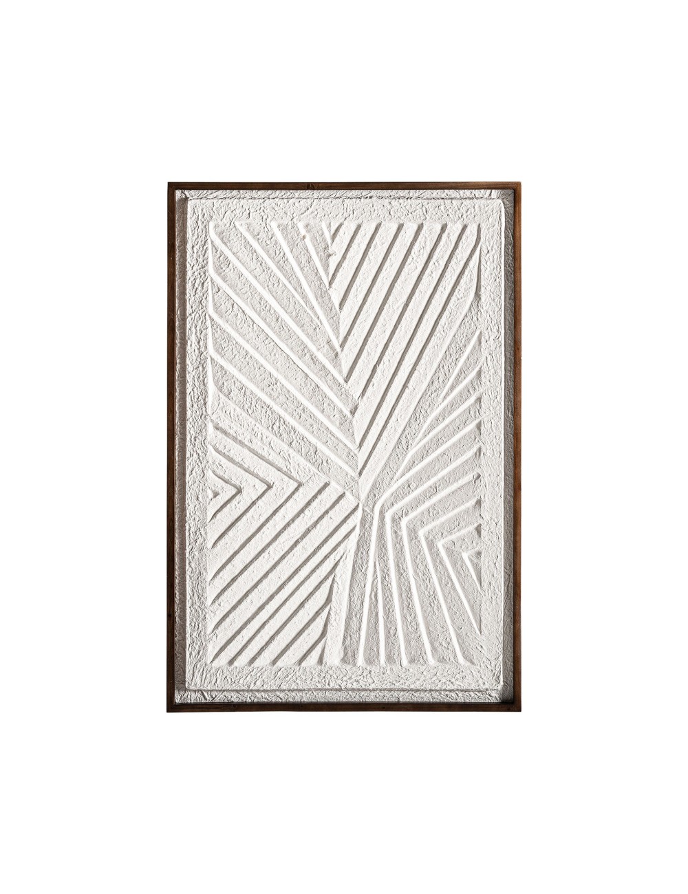 Cuadro Nakal de estilo contemporáneo, fabricado en papel maché en color blanco con acabado artesanal, combinado con madera de paulownia en color marrón.