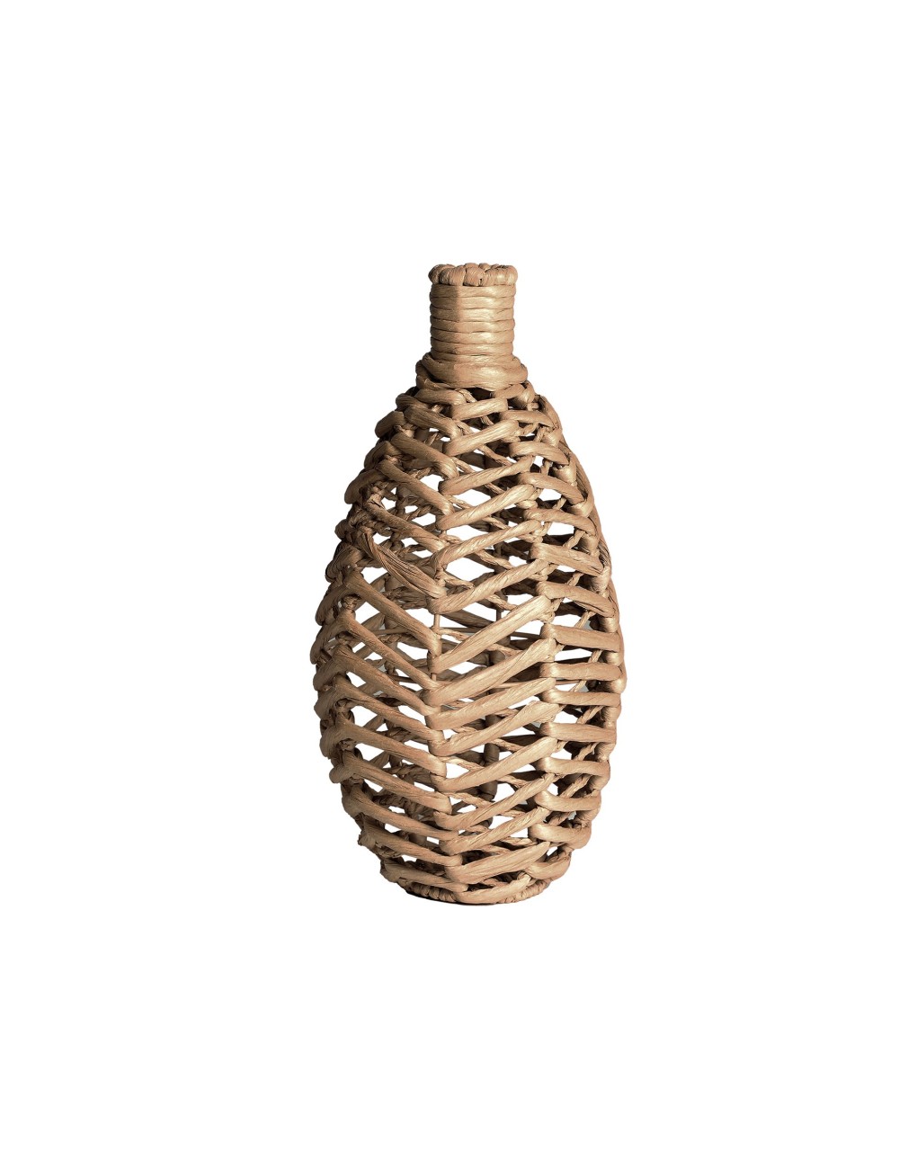 Botella redondo lebork de estilo boho, fabricado en fibra natural en color marrón.