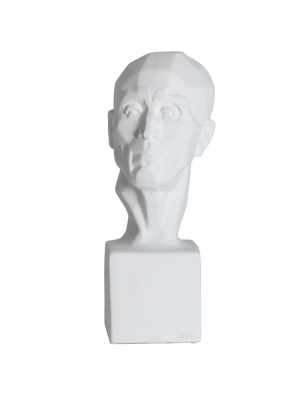 Figura rectangular galeo de estilo contemporáneo, fabricado en cerámica en color blanco.