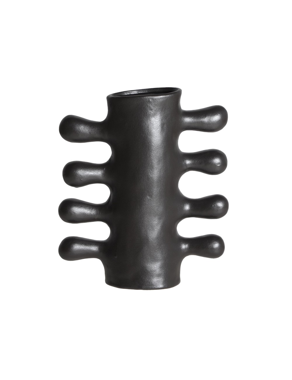 Jarrón irregular glessy de estilo contemporáneo, fabricado en cerámica en color negro.