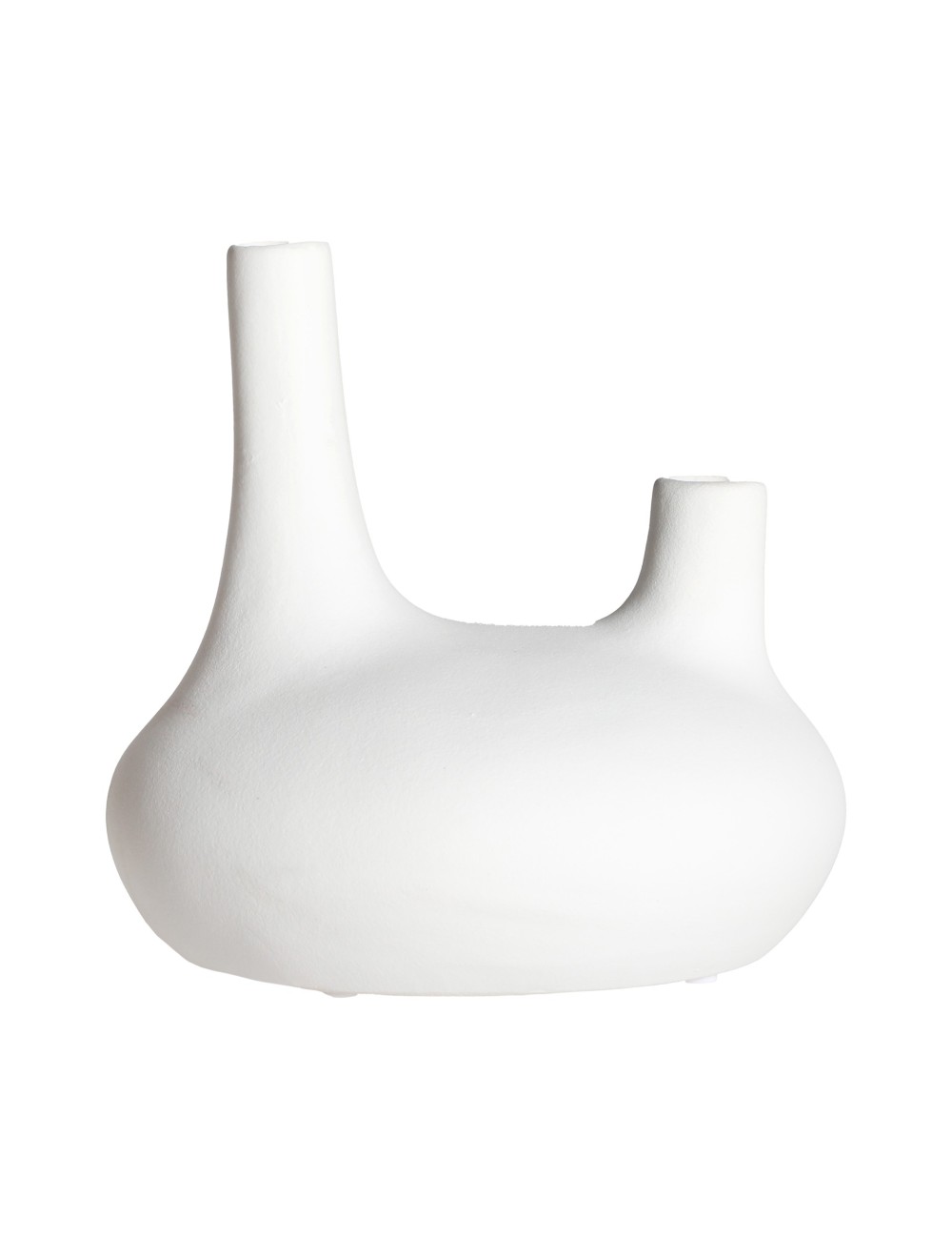 Jarrón irregular zick de estilo contemporáneo, fabricado en cerámica en color blanco.