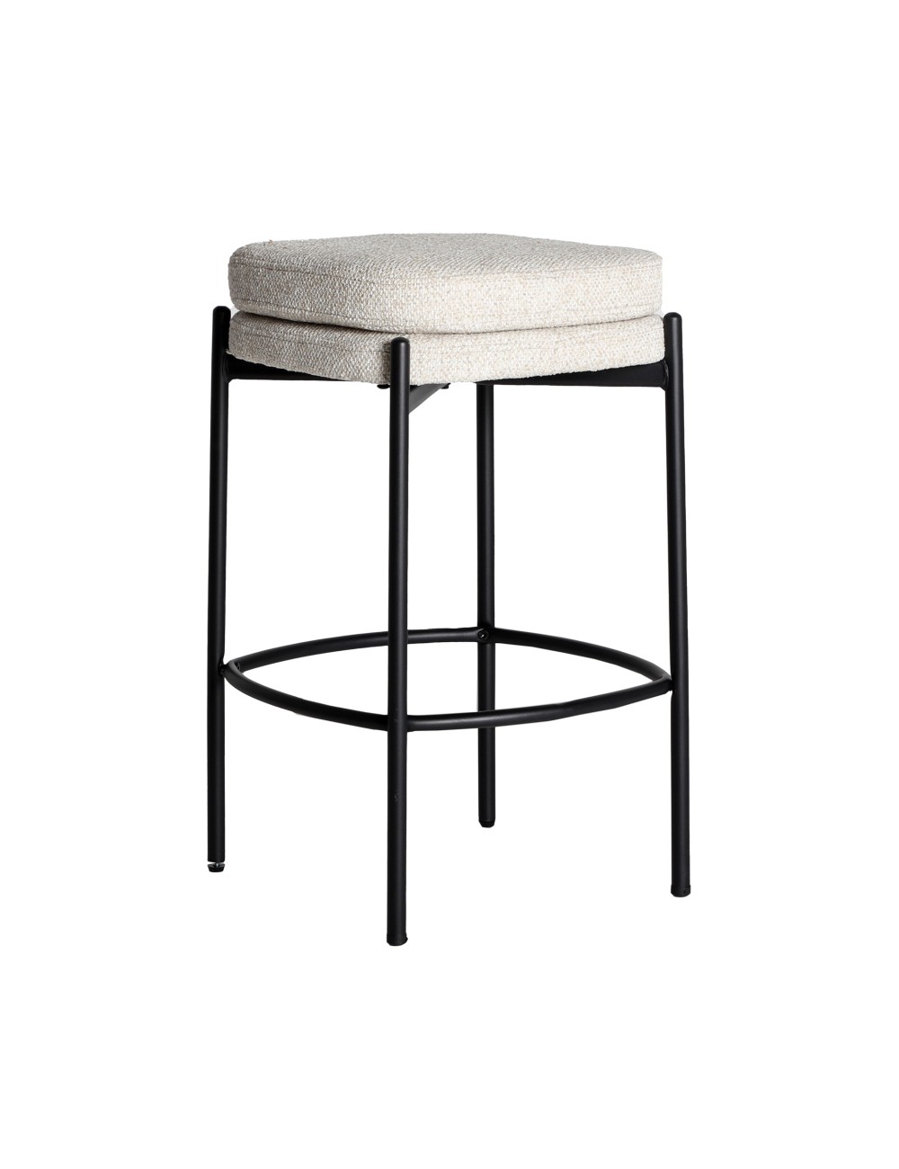 Taburete rectangular segonzac de estilo vintage, fabricado en poliéster en color beige, combinado con hierro en color negro. Producto desmontable. Taburete rectangular breville de estilo vintage, fabricado en poliéster en color blanco roto, combinado con hierro en color negro. Producto desmontable.