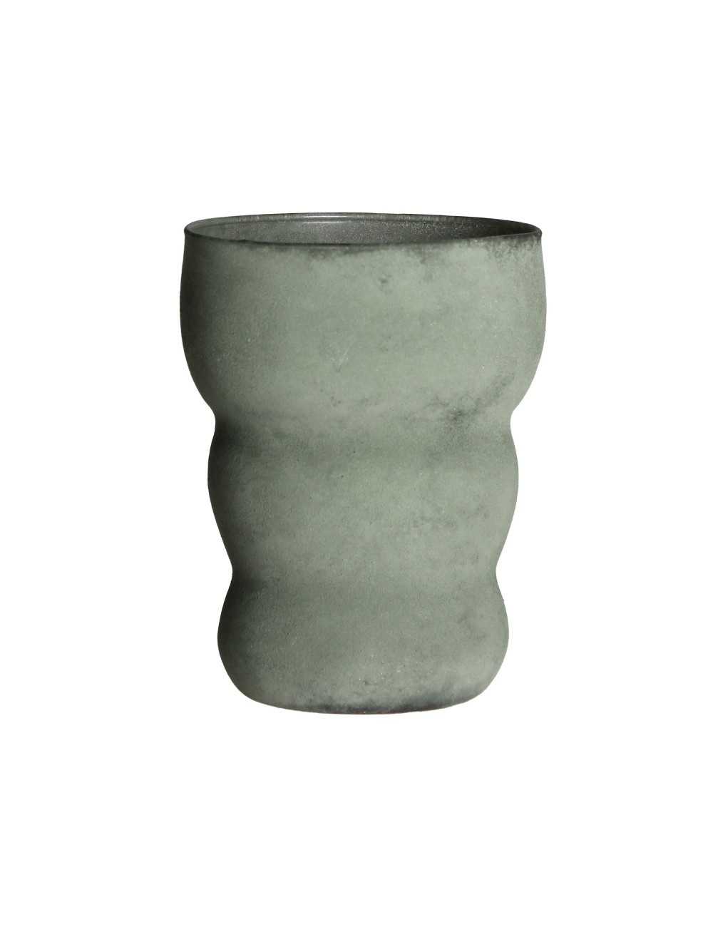Jarrón irregular jeda de estilo shabby chic, fabricado en vidrio en color verde.