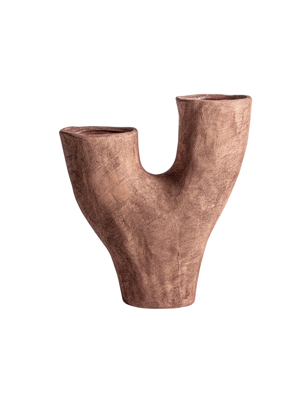 Jarrón irregular mezin de estilo contemporáneo, fabricado en cerámica en color marrón.