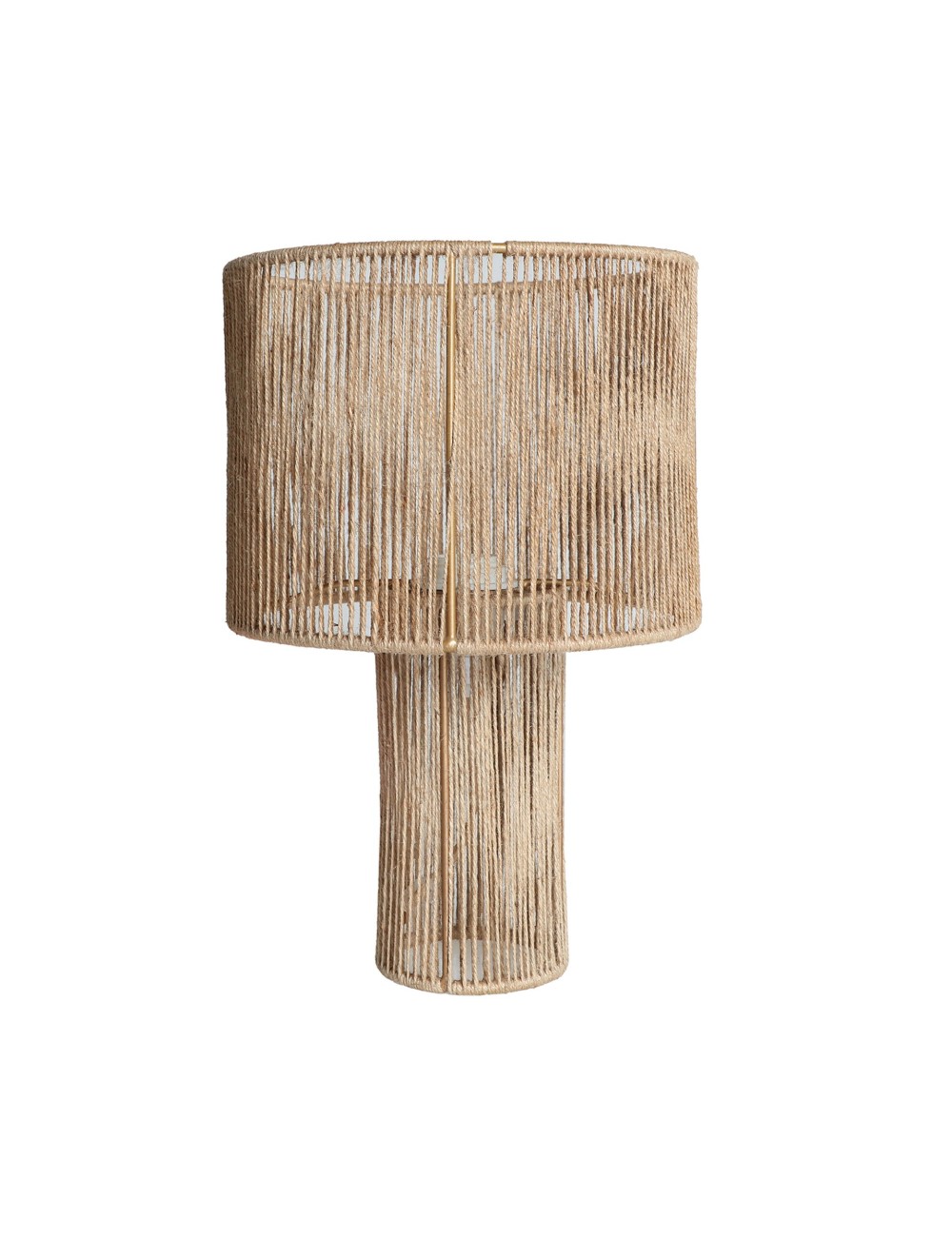 Lámpara de sobremesa Bacalar de estilo boho, fabricado en yute en color marrón claro, combinado con hierro en color marrón.