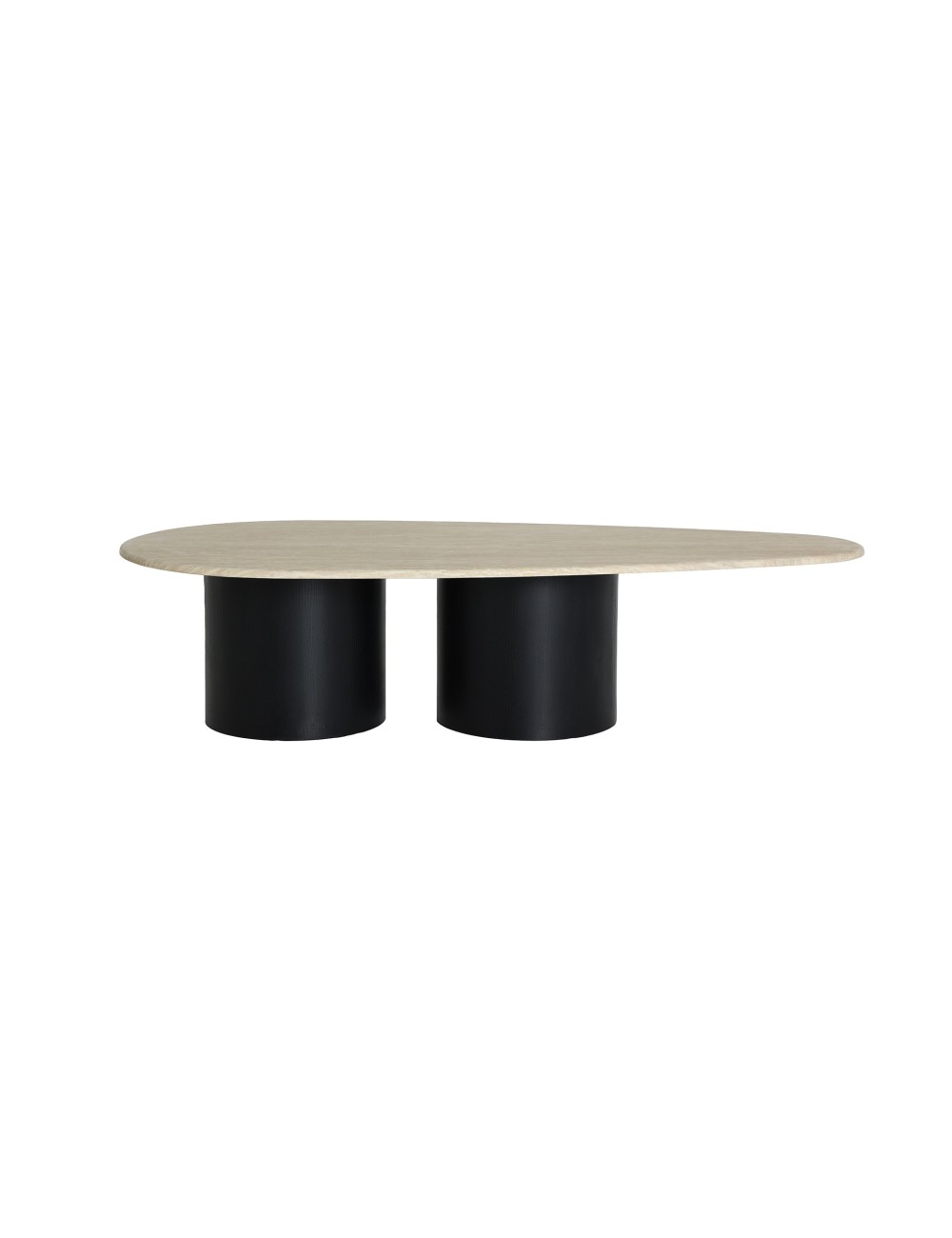 Mesa de centro Grambois de estilo contemporáneo, fabricado en madera dm en color negro, combinado con mármol sintético en color beige. | Mesa de centro trevoux de estilo nórdico, fabricado en madera de mango en color marrón con acabado natural. Producto desmontable. | Mesa de centro Cles de estilo art deco fabricado en gres en color gris. Producto desmontable. |