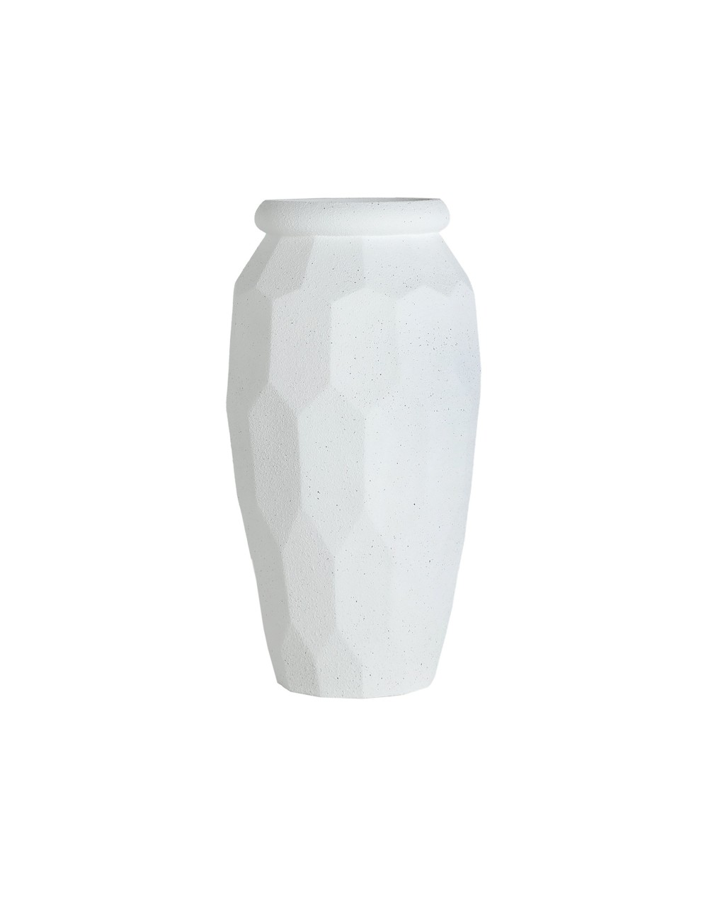 Macetero Elmur de estilo contemporáneo, fabricado en poliresina en color blanco roto.