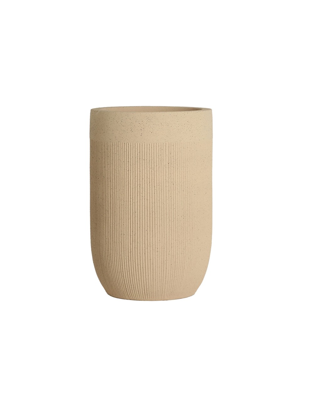 Macetero Kavan de estilo contemporáneo, fabricado en poliresina en color arena.
