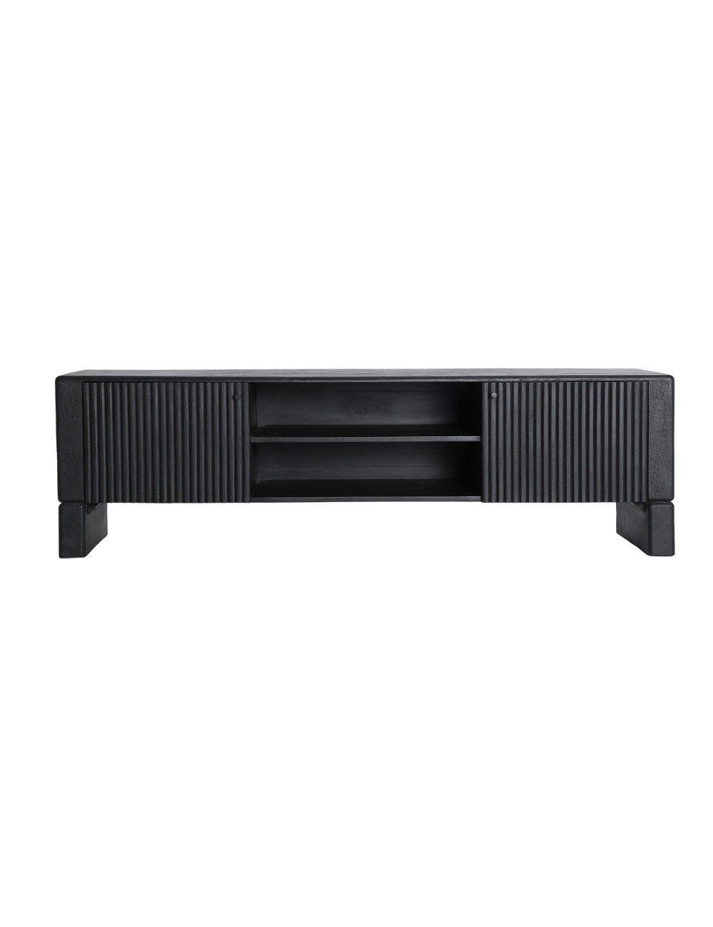 Mueble tv Nox de estilo contemporáneo, fabricado en madera de mango en color negro, combinado con madera dm. | Mueble tv rectangular koigi de estilo nórdico, fabricado en madera de mango en color marrón. Producto desmontable. | Mueble tv blesle de estilo contemporáneo, fabricado en madera de acacia en color marrón, combinado con madera dm. Producto desmontable. | Mueble tv Busk de estilo nórdico, fabricado en madera de fresno en color marrón claro, combinado con madera dm en color marrón y hierro en color negro. |