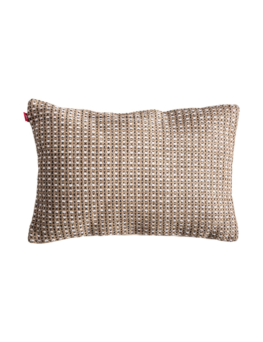Cojín Halena de estilo clásico, fabricado en algodón en color blanco roto, combinado con poliéster en color marrón.