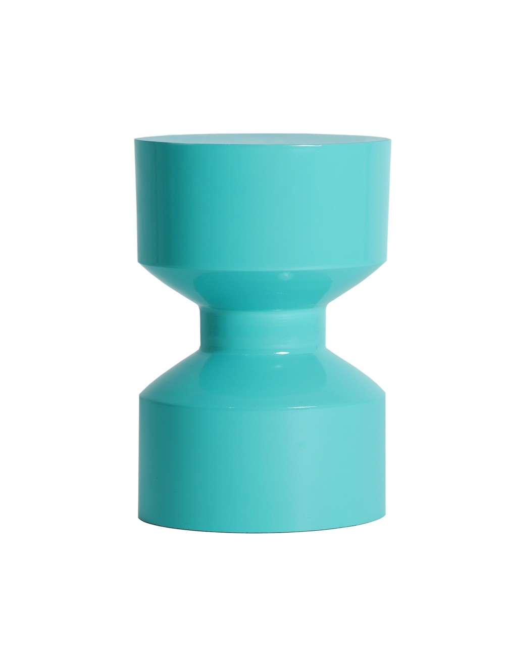 Mesa auxiliar Pop de estilo contemporáneo, fabricado en hierro en color turquesa con acabado brillo.