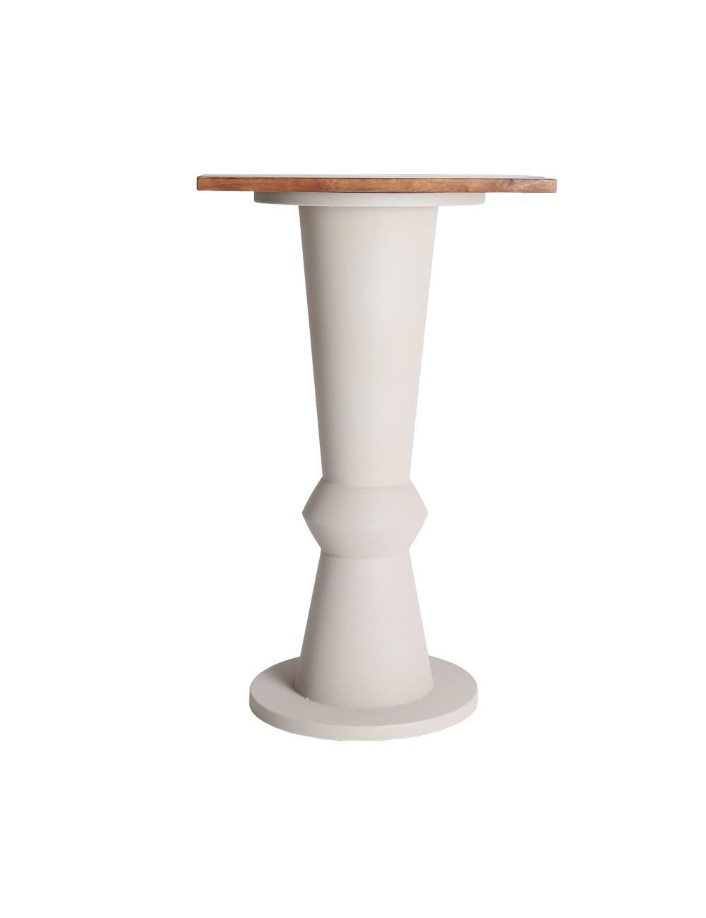 Mesa bar Kilhe de estilo contemporáneo, fabricado en hierro en color beige, combinado con madera de mango en color marrón. Producto desmontable.