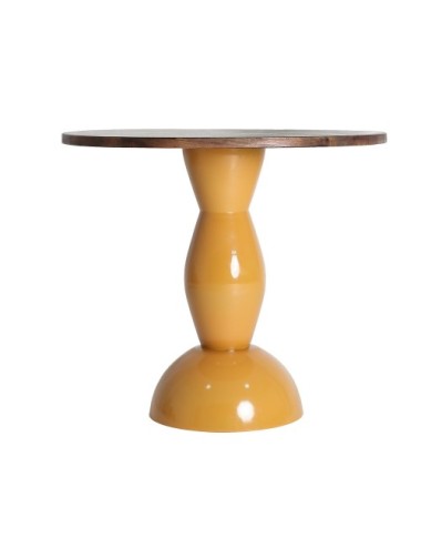 Mesa comedor Nahina de estilo contemporáneo, fabricado en hierro en color ocre con acabado brillo, combinado con madera de mango en color marrón. Producto desmontable.
