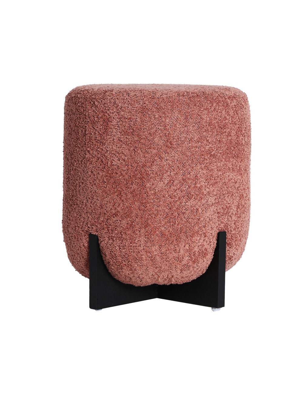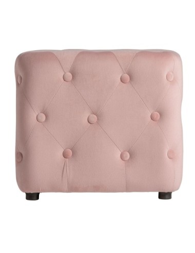 Reposapiés Lemuy de estilo contemporáneo, fabricado en poliéster en color rosa, combinado con madera de pino en color negro.