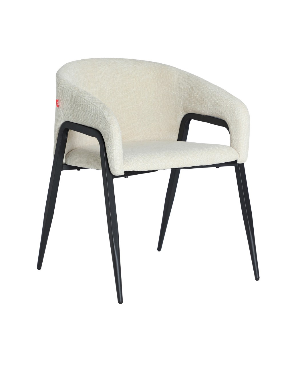 Silla Aren de estilo contemporáneo, fabricado en poliéster en color blanco roto, combinado con hierro en color negro y espuma. Producto desmontable.
