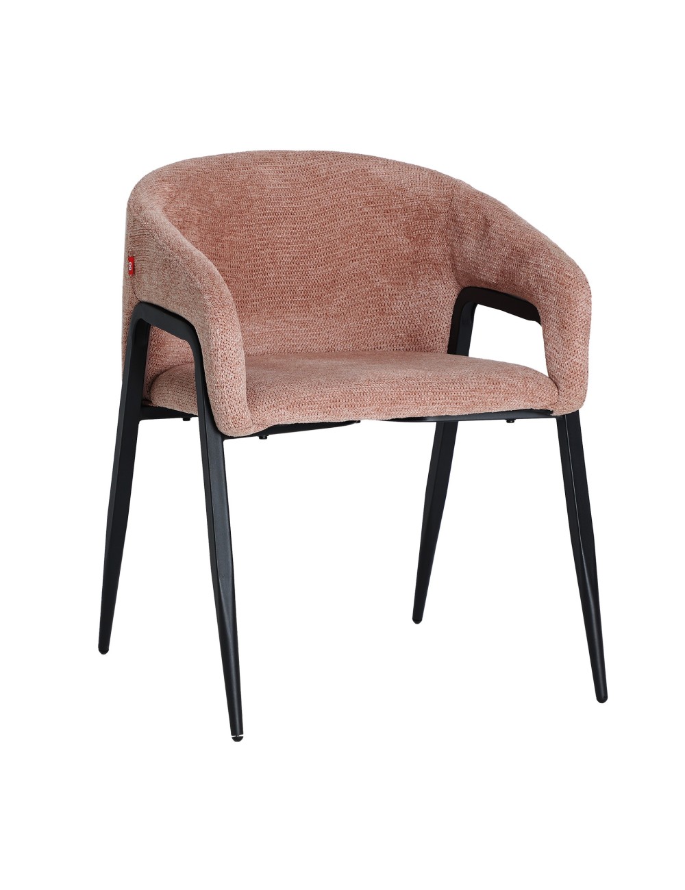 Silla Aren de estilo contemporáneo, fabricado en poliéster en color rosa palo, combinado con hierro en color negro y espuma. Producto desmontable.