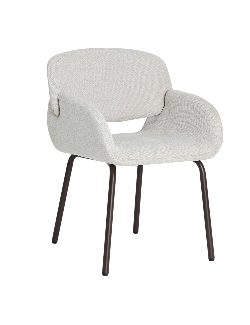 Silla Noor de estilo contemporáneo, fabricado en poliéster en color blanco roto, combinado con hierro en color marrón y espuma. Producto desmontable.