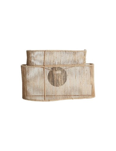 Aplique Cekle de estilo contemporáneo, fabricado en madera de mango en color naranja con acabado lacado, combinado con hierro en color crema con acabado brillo y aluminio en color dorado. Aplique Yaxunah de estilo boho, fabricado en yute en color marrón claro, combinado con hierro en color marrón claro. Aplique jakle de estilo art deco fabricado en hierro en color oro. Aplique speldorf de estilo art deco fabricado en hierro en color negro.