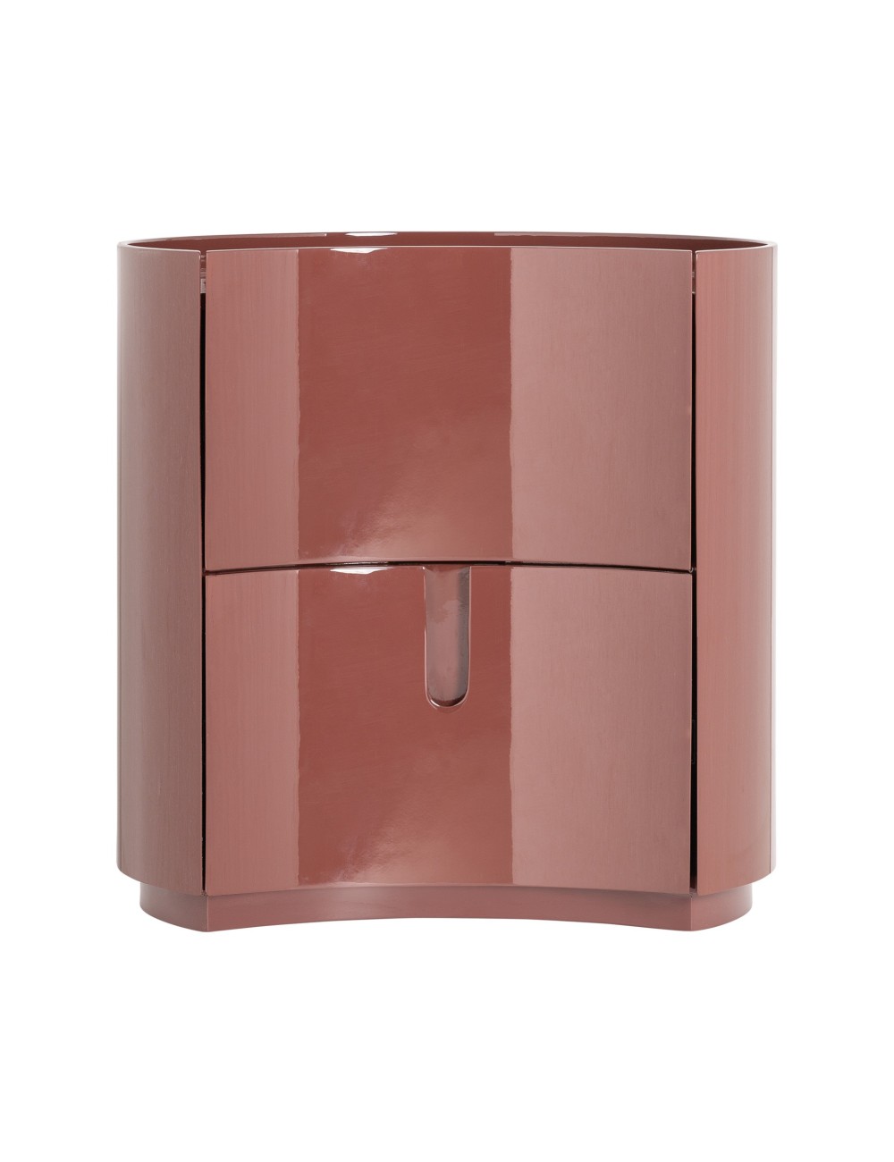 Mesita de noche Rubra de estilo contemporáneo, fabricado en madera dm en color burdeos. | Mesita de noche thiers, en color negro/marrón, de estilo nórdico. Fabricado en madera mindi, combinado con madera contrachapada. |