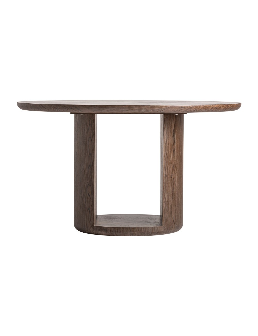 Mesa comedor Arko de estilo contemporáneo, fabricado en madera dm en color marrón, combinado con chapa de madera. Producto desmontable.