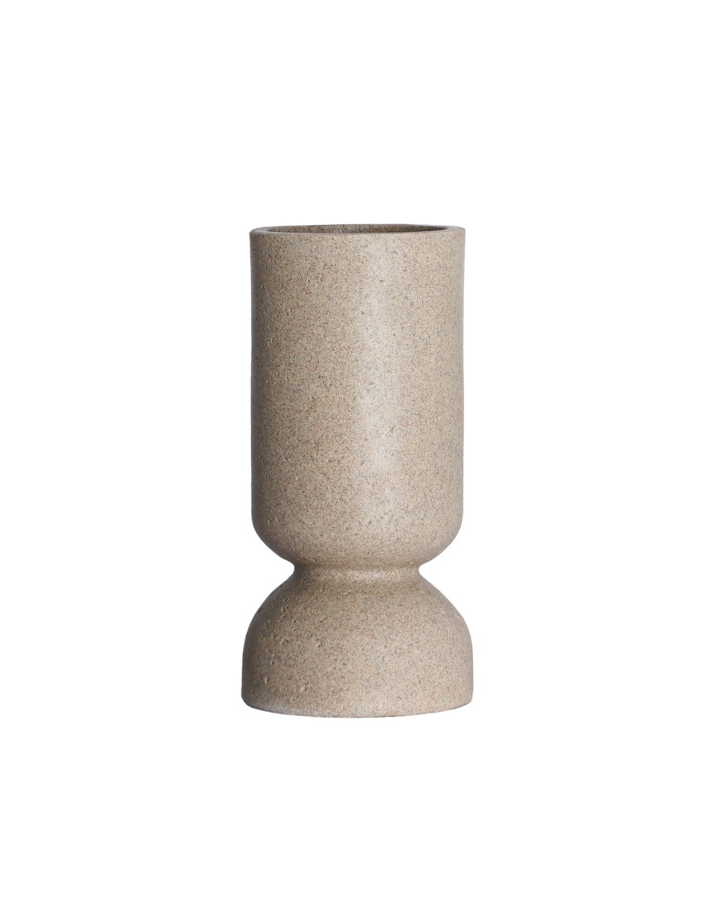 Jarrón Aubra de estilo contemporáneo, fabricado en resina en color beige.