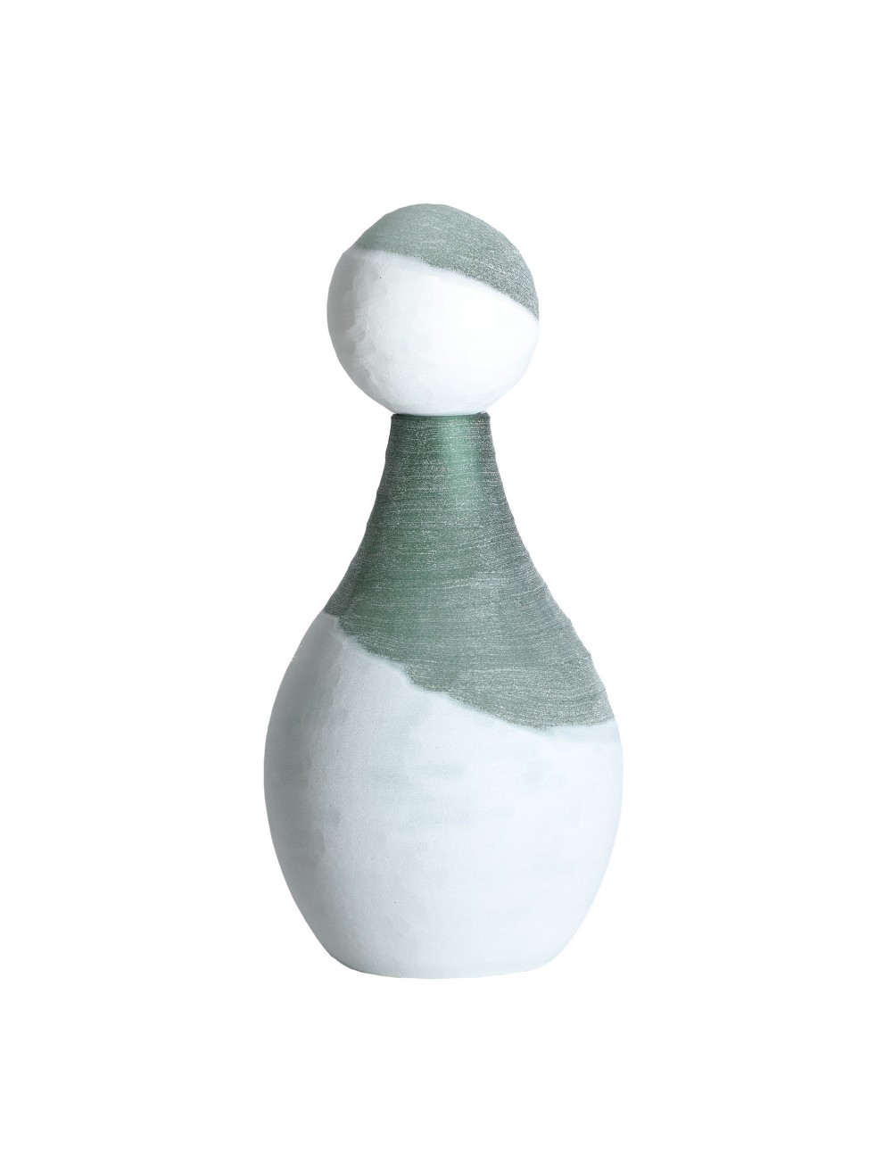 Jarrón Kono de estilo contemporáneo, fabricado en vidrio en color verde en color blanco.