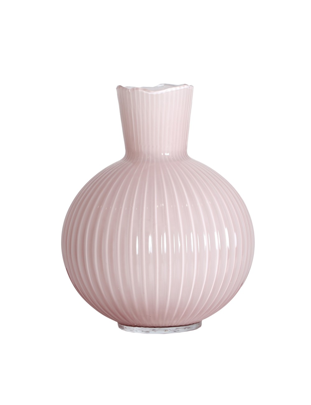 Jarrón Nude de estilo clásico, fabricado en vidrio en color rosa palo con acabado satinado.