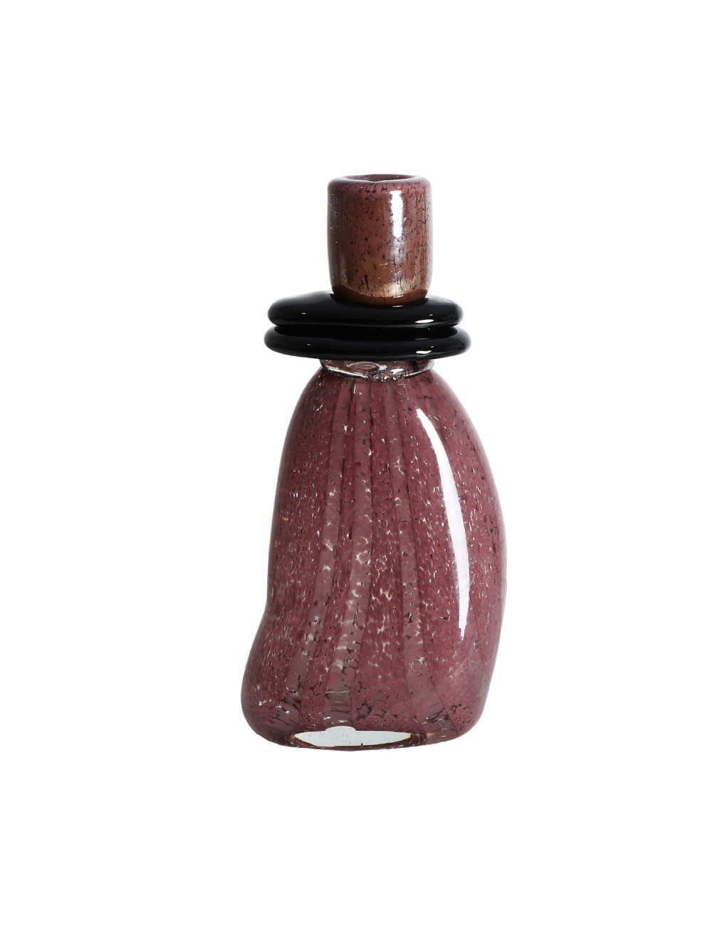 Jarrón Ruise de estilo contemporáneo, fabricado en vidrio en color burdeos con acabado brillo en color negro.