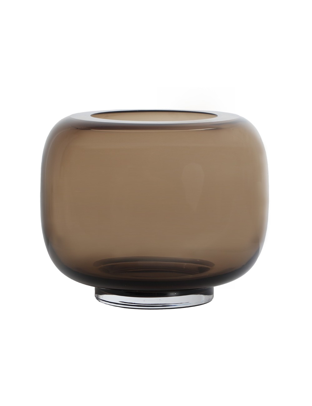 Jarrón Zina de estilo contemporáneo, fabricado en vidrio en color marrón con acabado traslúcido.