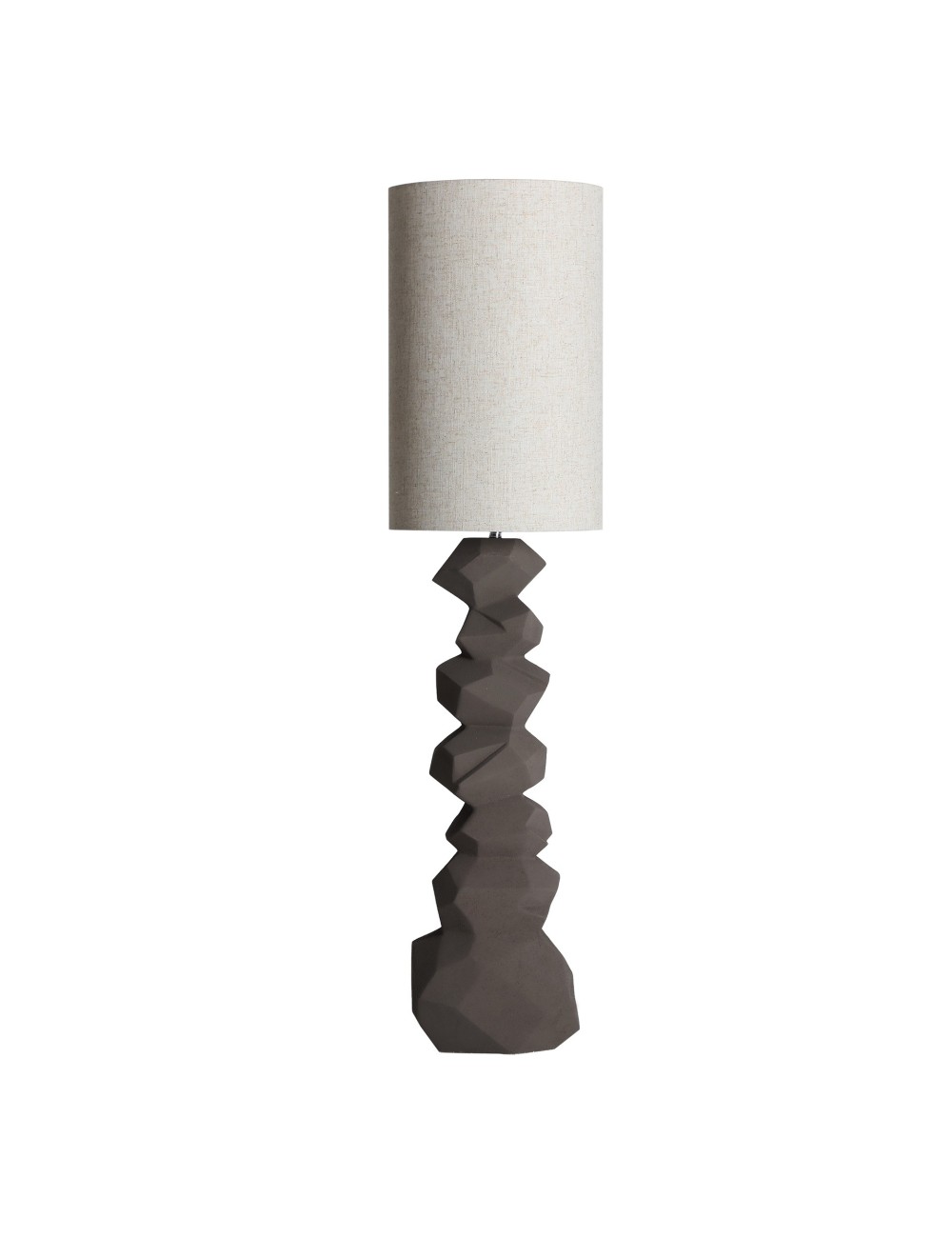 Lámpara de pie Pedra de estilo contemporáneo, fabricado en cerámica en color gris con acabado rugoso, combinado con poliéster en color blanco roto. Producto desmontable.