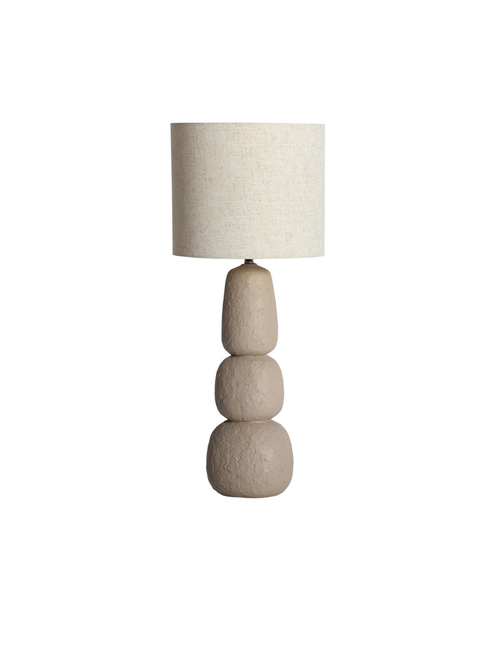 Lámpara de sobremesa Globa de estilo contemporáneo, fabricado en resina en color beige con acabado rugoso, combinado con poliéster en color beige. Producto desmontable.