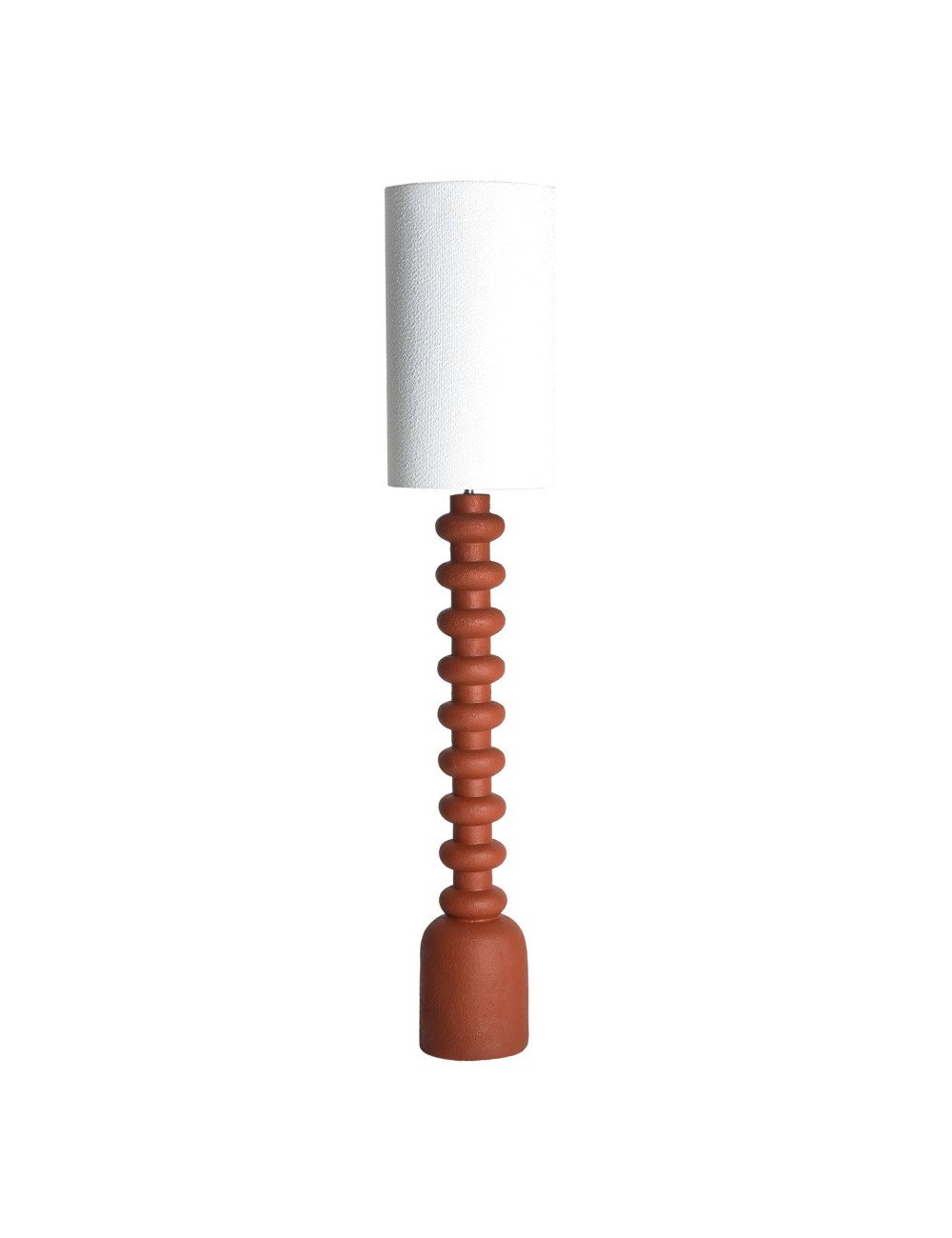 Lámpara de pie Temba de estilo contemporáneo, fabricado en resina en color terracota, combinado con poliéster en color blanco roto. Producto desmontable.