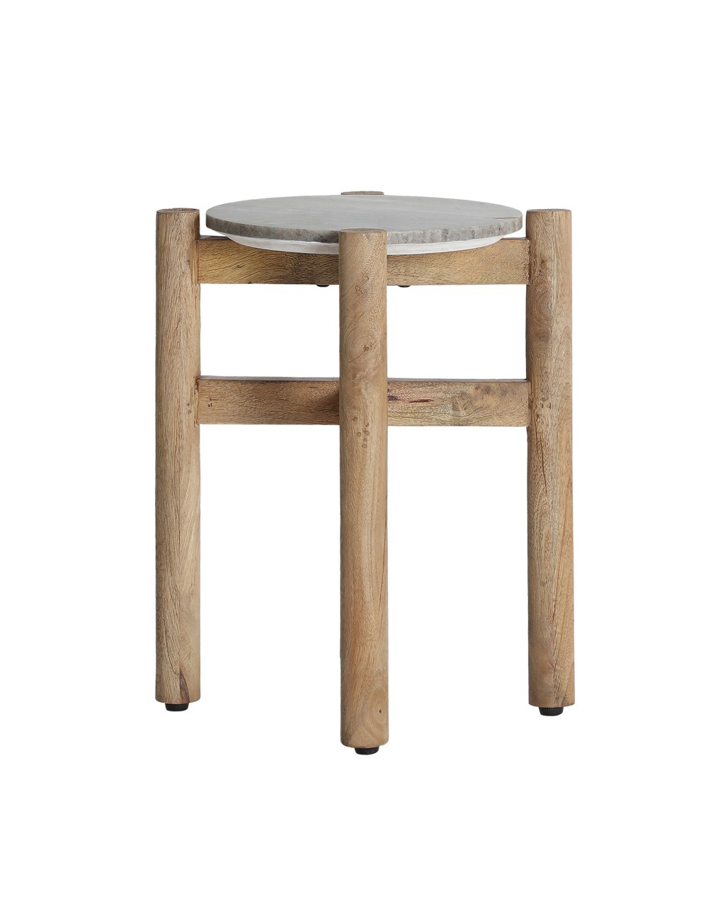 Mesa auxiliar Lacuane de estilo nórdico, fabricado en mármol en color gris, combinado con madera de mango en color marrón. Producto desmontable.