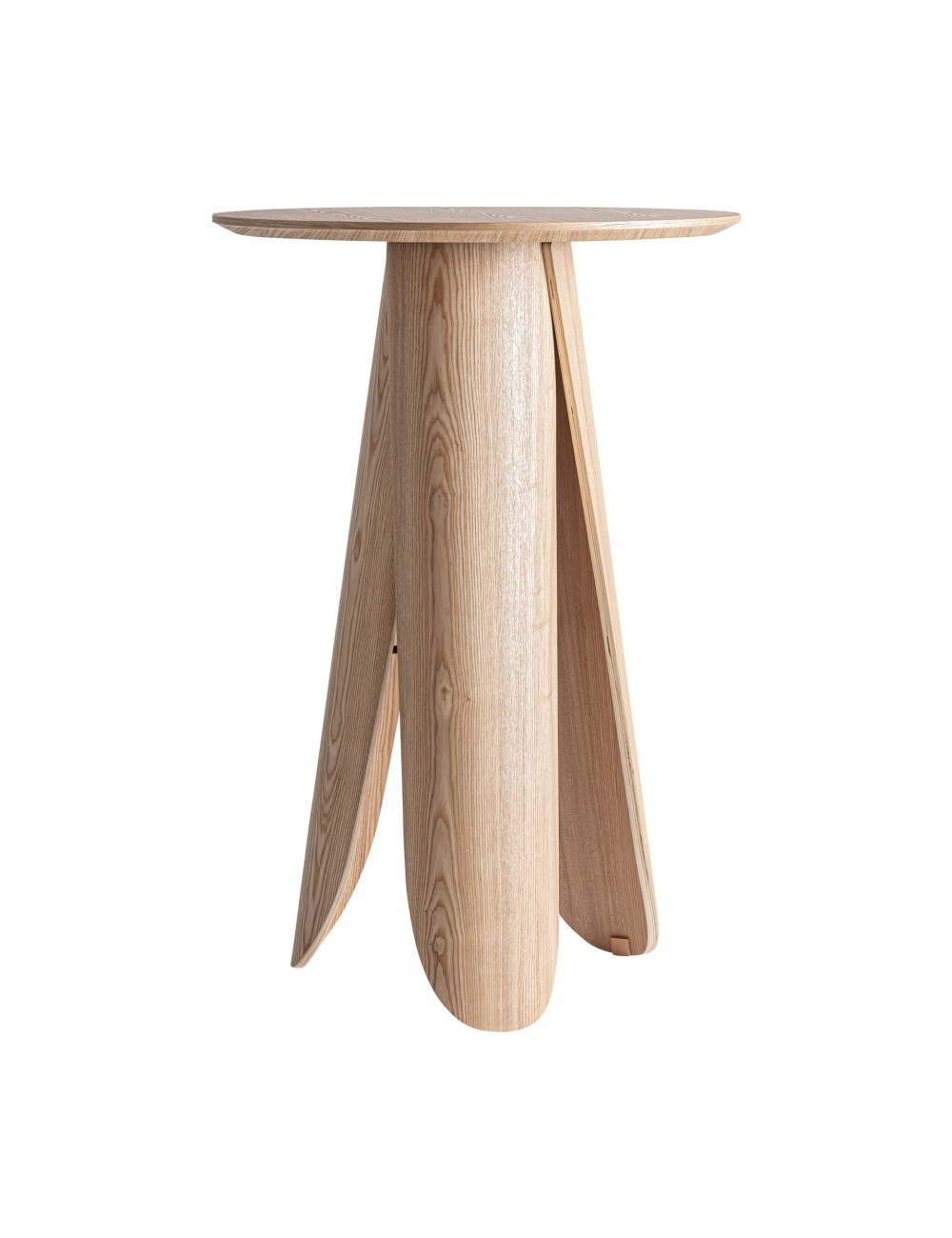 Mesa bar Wieler de estilo nórdico, fabricado en madera dm en color marrón claro, combinado con chapa de fresno. Producto desmontable.