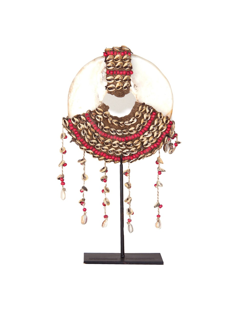 Figura Collar piedra de estilo étnico fabricado en piedra en color blanco combinado con metal en color rojo y concha. Producto desmontable. Figura decorativa de estilo nórdico fabricado en piedra en color negro combinado con hierro en color negro. Piedra de rio. Producto desmontable. Busto Robin de estilo étnico fabricado en madera petrificada en color marrón con acabado envejecido. Busto Thailandés de estilo oriental fabricado en piedra en color marrón con acabado envejecido.