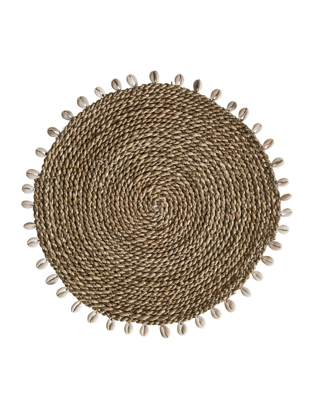 Salvamantel Roel de estilo clásico fabricado en cuerda en color marrón combinado con concha.