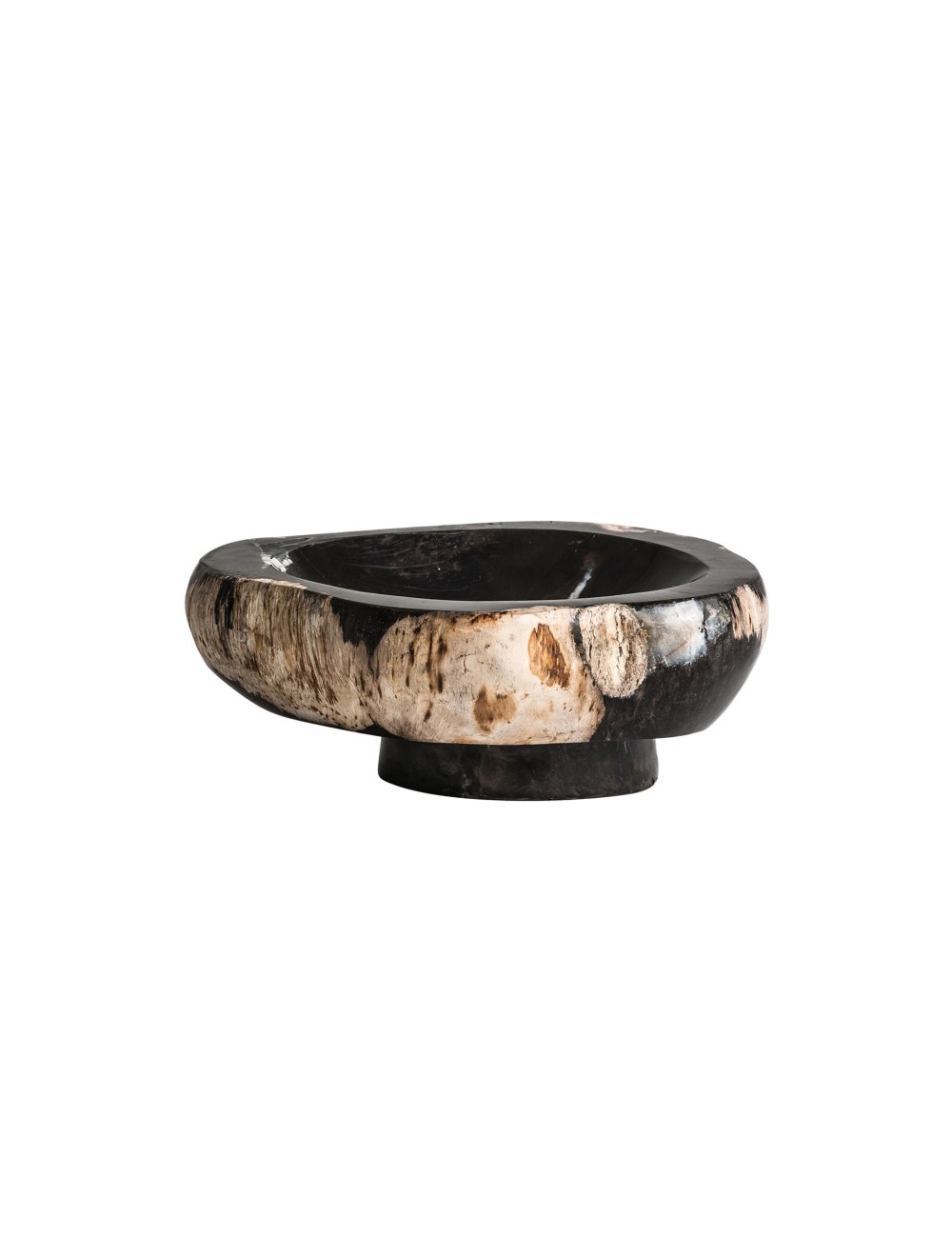 Cuenco de estilo étnico fabricado en madera petrificada en color multicolor con acabado envejecido. | Centro Ikuah de estilo étnico fabricado en madera de teka en color marrón. | Centro Ikuah de estilo étnico fabricado en madera de teka en color marrón. | Bandeja Zonza de estilo art deco fabricado en hueso en color blanco en color negro. |