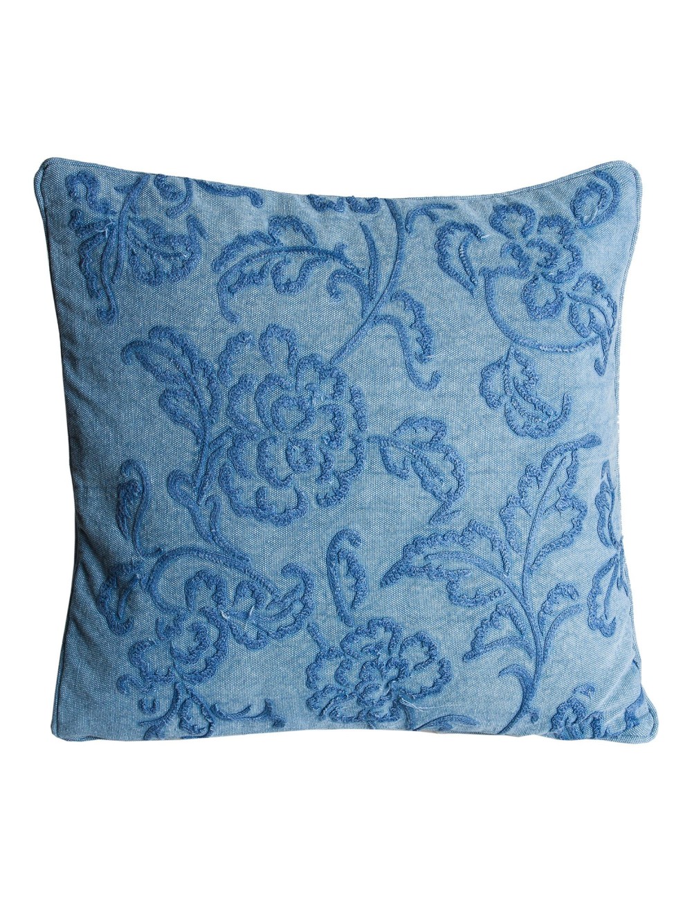 Cojín Blesi de estilo provenzal fabricado en algodón en color azul con acabado bordado.