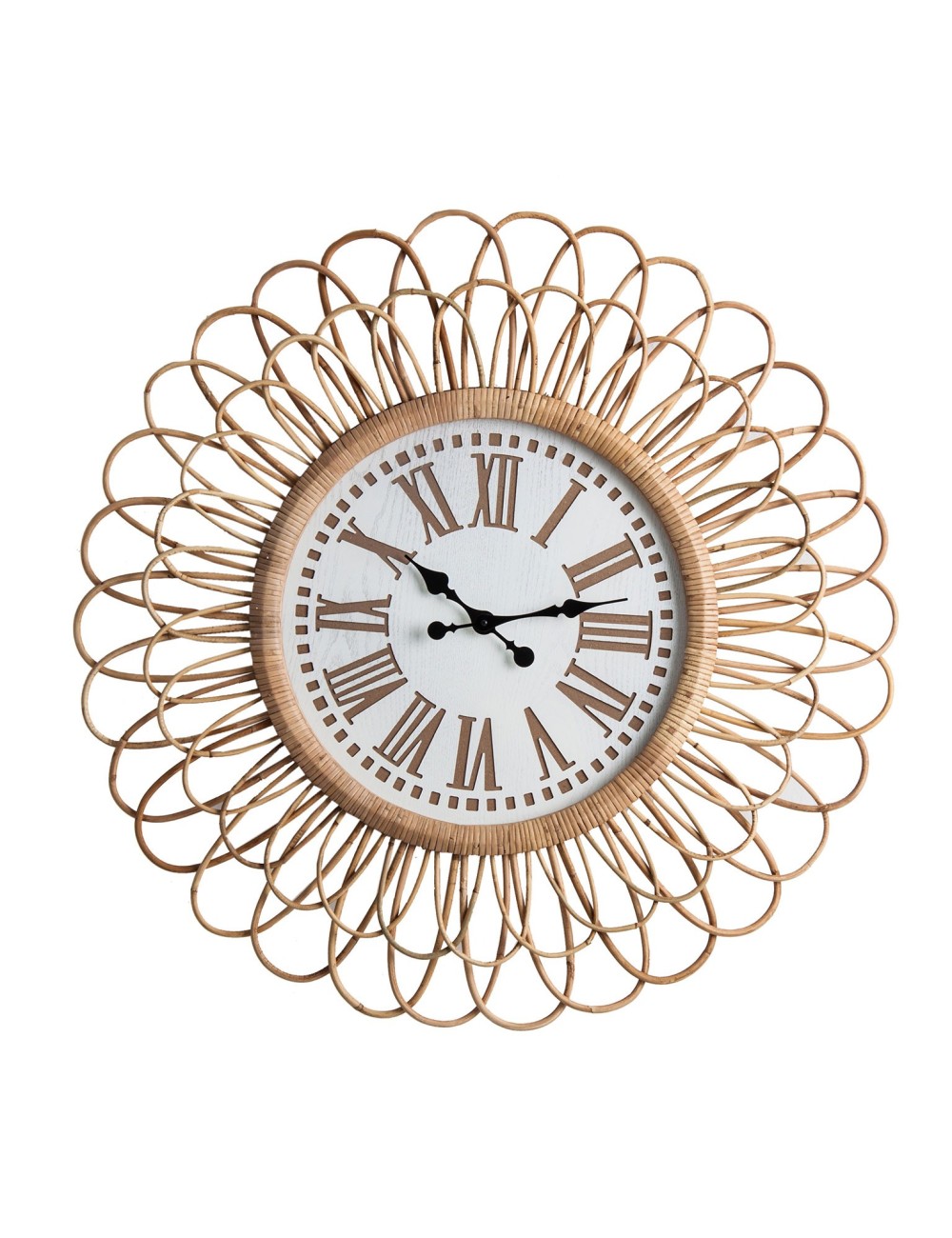 Reloj Ghiare de estilo contemporáneo fabricado en ratán en color marrón combinado con madera dm.