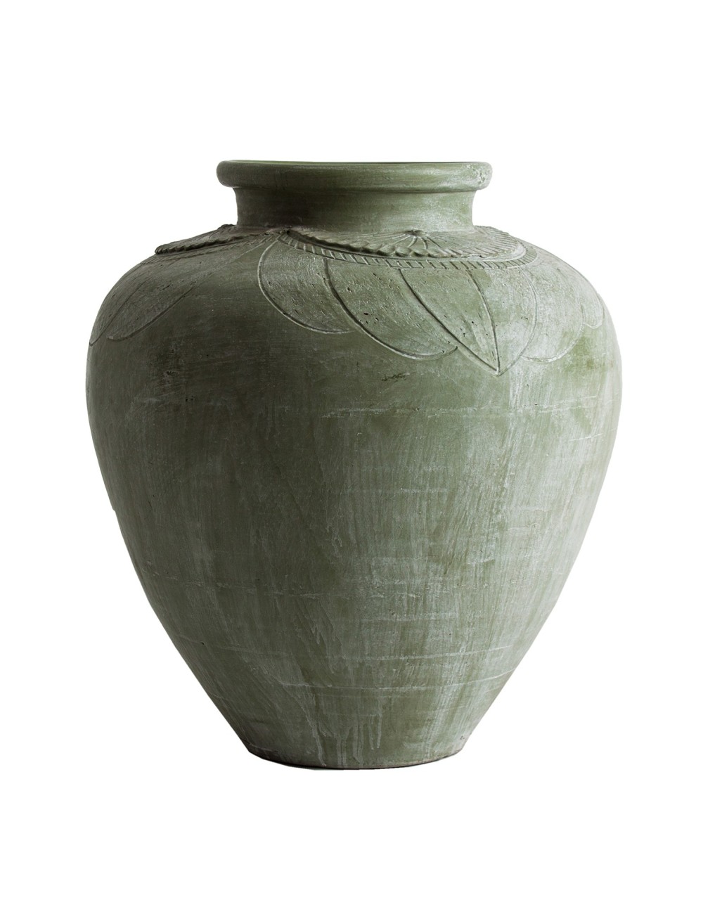 Tinaja Llitia de estilo contemporáneo fabricado en terracota en color verde.