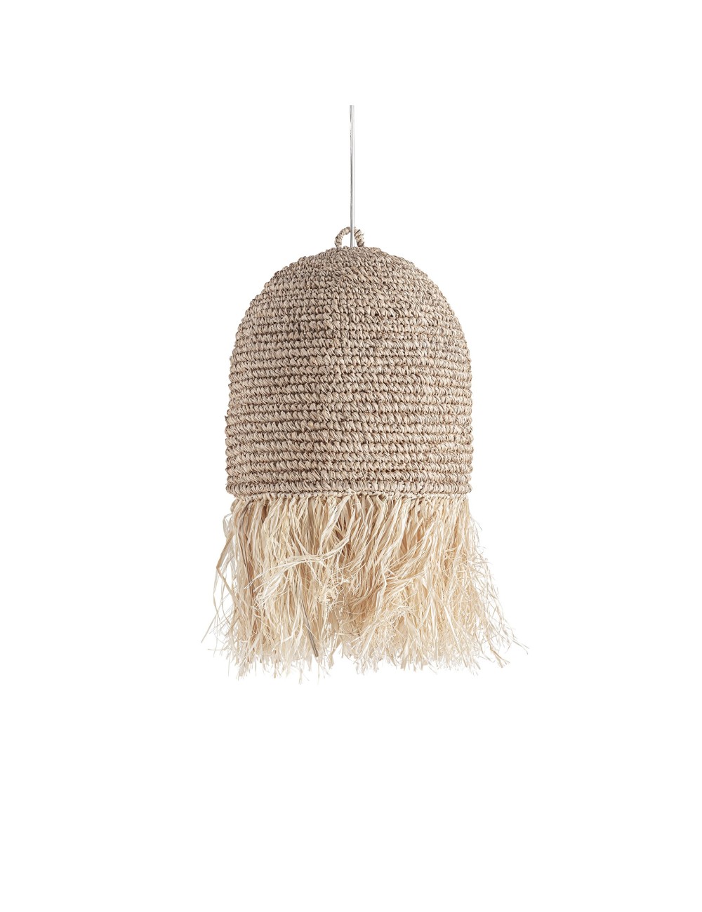 Lámpara de colgar de estilo contemporáneo fabricado en fibra natural en color marrón.