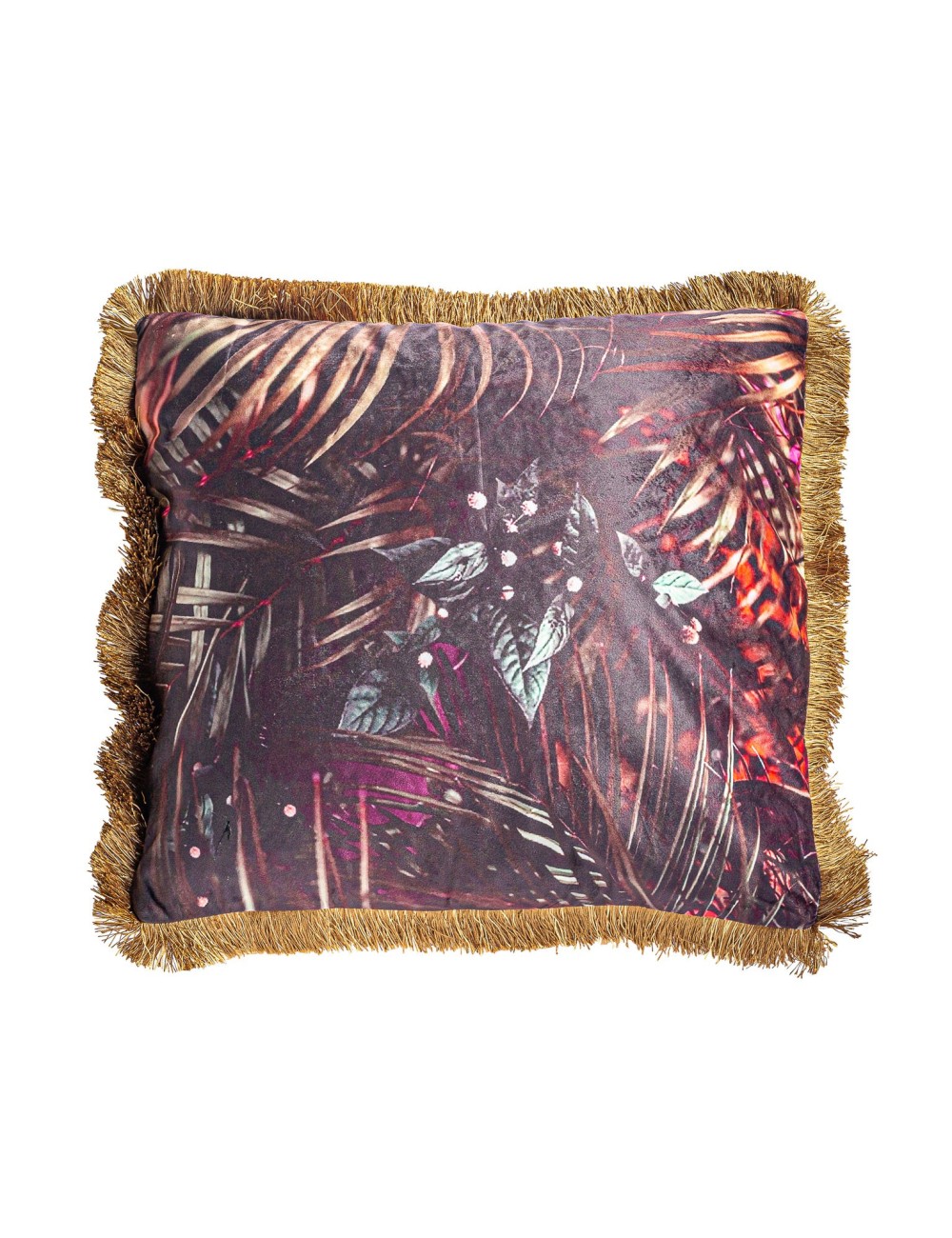 Cojín Ceyhun de estilo shabby chic fabricado en terciopelo en color tonos oscuros.