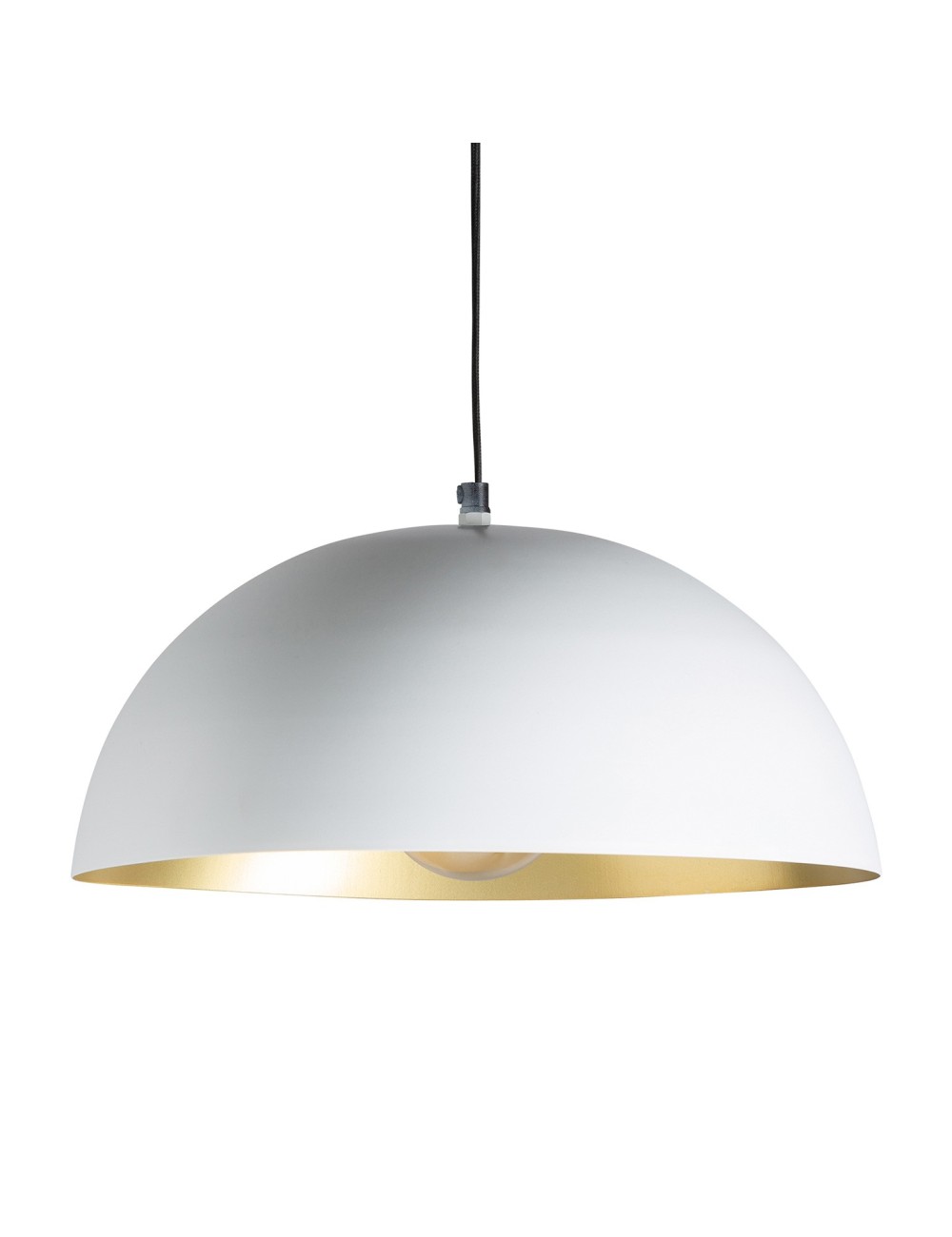 Lámpara de colgar de estilo art deco fabricado en hierro en color blanco en color oro. Producto extensible.