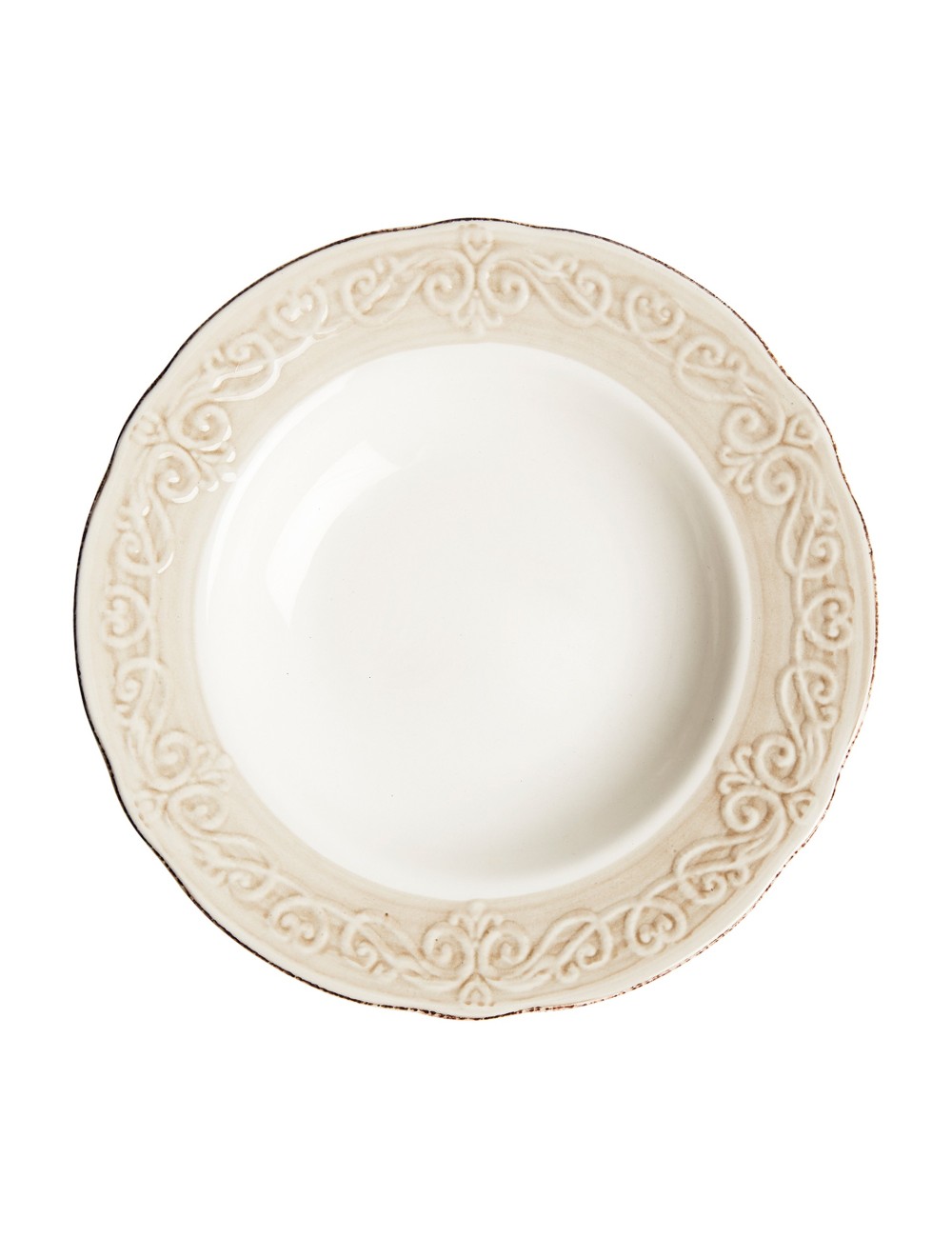 Plato Alka de estilo shabby chic fabricado en cerámica en color blanco. | Plato Canedela de estilo clásico fabricado en porcelana en color blanco roto con acabado rugoso. | Plato Hondo paola de estilo clásico fabricado en porcelana en color blanco con acabado rugoso. | Plato Candela de estilo clásico fabricado en porcelana en color blanco roto con acabado rugoso. |