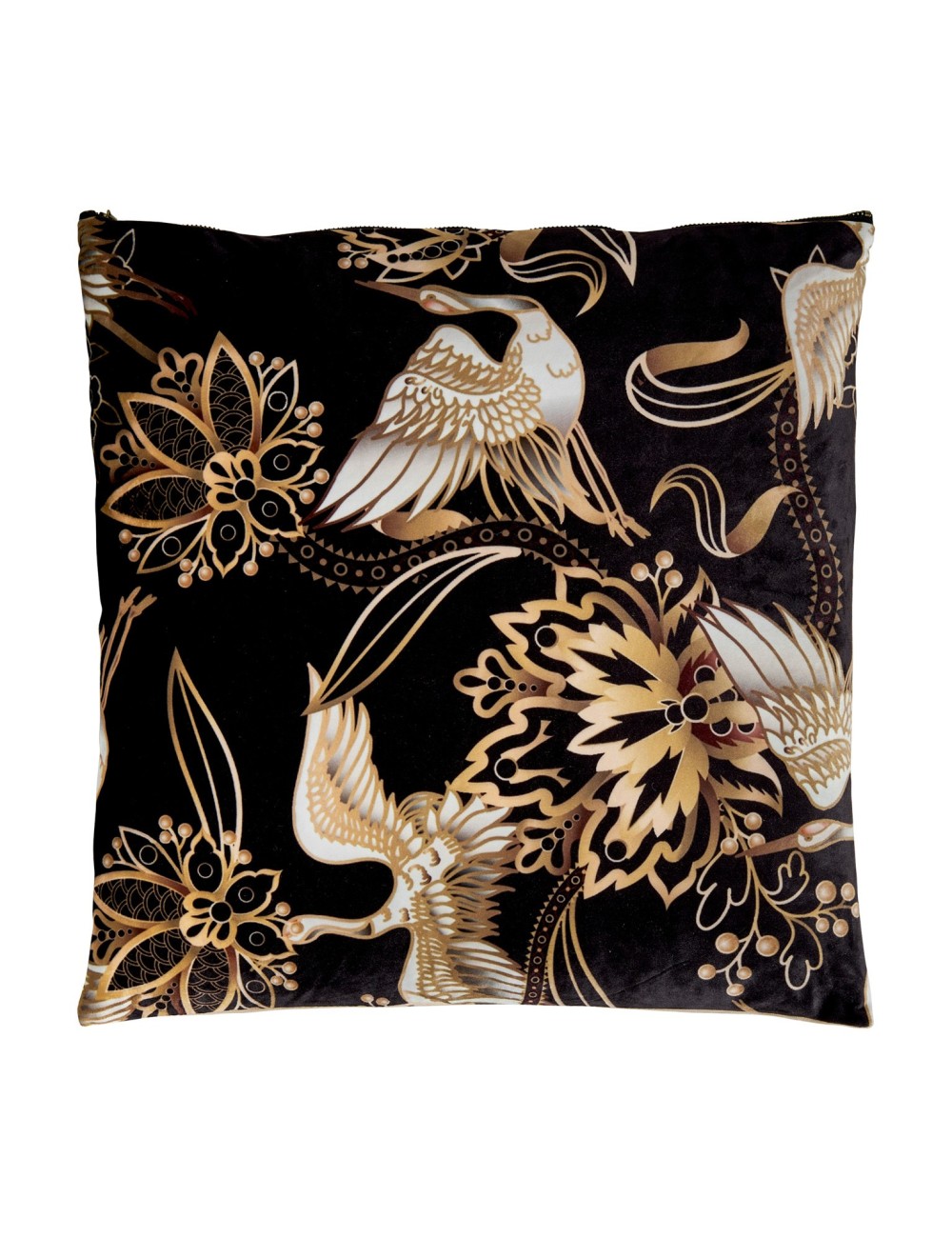 Cojín Achlys de estilo provenzal fabricado en terciopelo en color negro en color oro. Producto desenfundable.